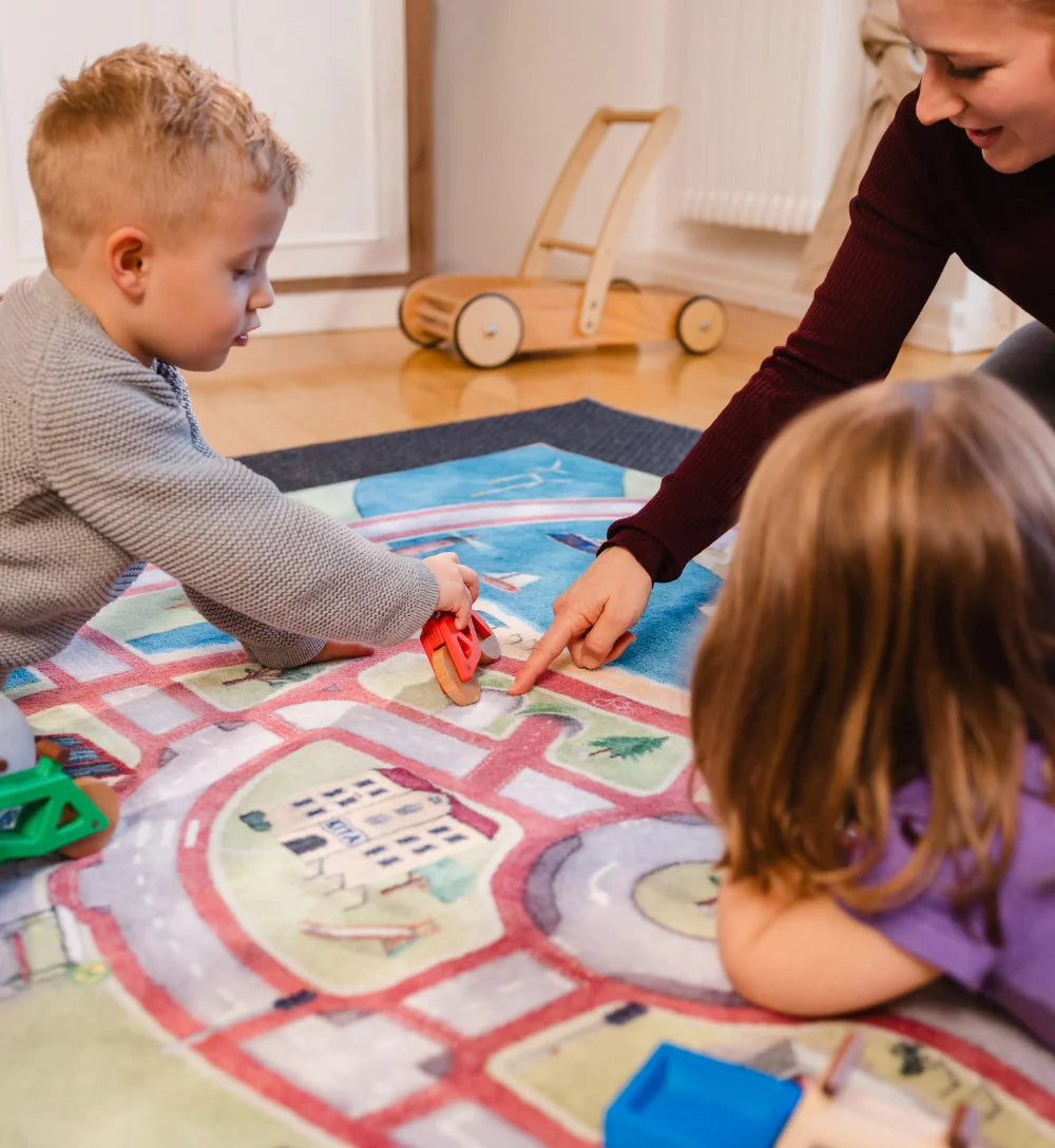 Unsere Geschichte beginnt nicht im Büro, sondern im Kinderzimmer. Als Eltern wollten wir einen Teppich finden, der zur Welt unserer Kinder passt und fanden keinen. Also machten wir selbst einen.