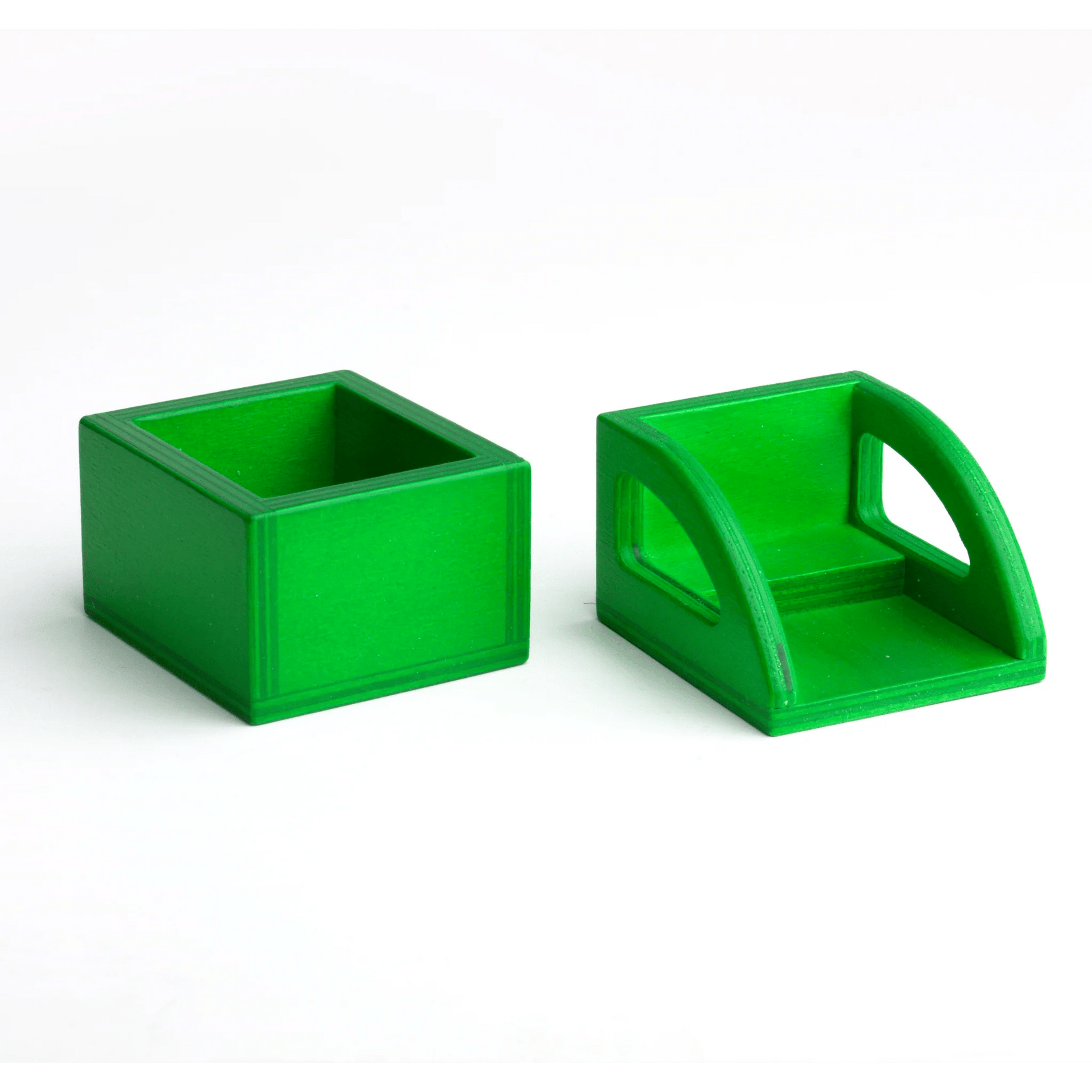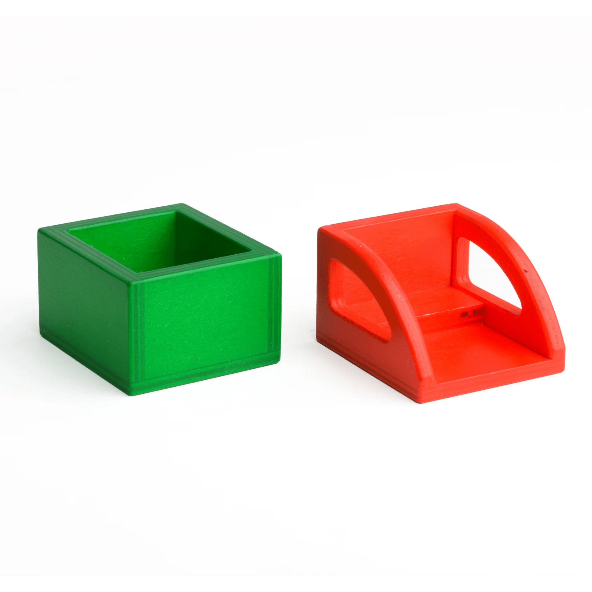 Die Aufsätze sind speziell für das Spielzeuglastenrad konzipiert. Sie können aber auch separat in andere Spielszenarien integriert werden, z. B. mit Bausteinen.